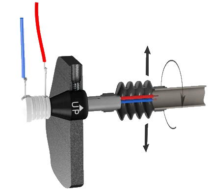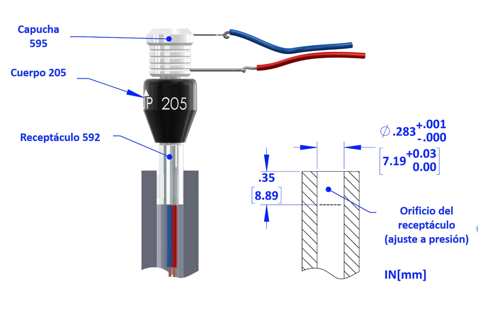 La tapa se conecta al extremo estacionario del 205 para conectar cables estacionarios.
