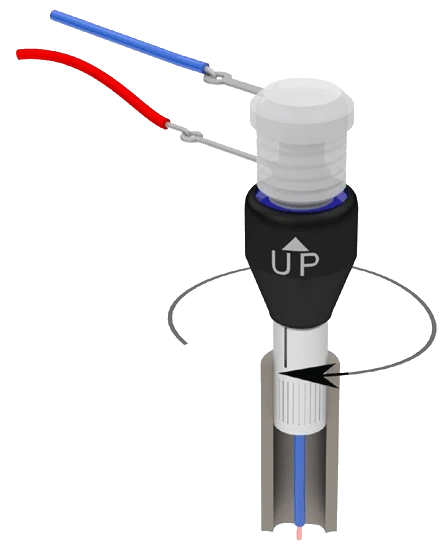 El modelo 205 normalmente se monta mediante el cuerpo negro o el contacto. El montaje en el cuerpo normalmente utiliza un tornillo de fijación o una abrazadera dividida. El soporte de contacto se sujeta en el receptáculo instalado mediante un ajuste de resorte. Lo mejor es montar el Mercotac de manera que el cuerpo del conector gire. Cuando se use horizontalmente, monte el Mercotac de manera que el cuerpo del conector gire.