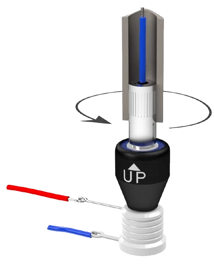 El modelo 205 se conecta al receptáculo después de que el receptáculo se ajusta a presión en el contacto giratorio de la máquina.