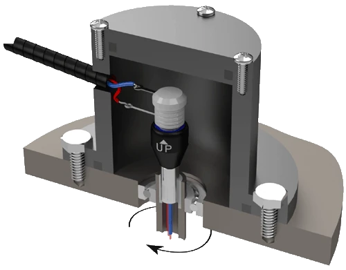 Se utiliza un receptáculo para montarlo en el dispositivo giratorio. Los accesorios son necesarios para las conexiones de cables, ya que las unidades Mercotac no se pueden soldar directamente. Ordene por separado.