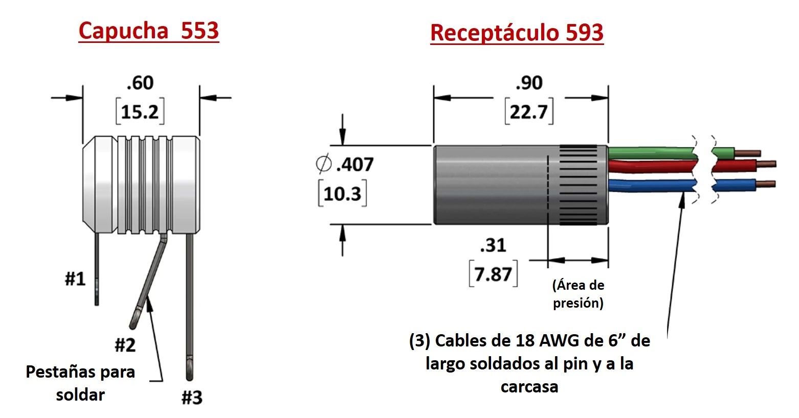 Se utiliza un receptáculo para montarlo en el dispositivo giratorio. Los accesorios son necesarios para las conexiones de cables, ya que las unidades Mercotac no se pueden soldar directamente. Ordene por separado.