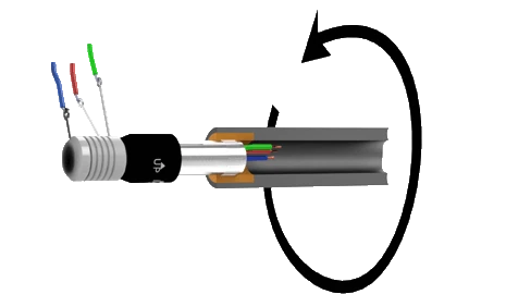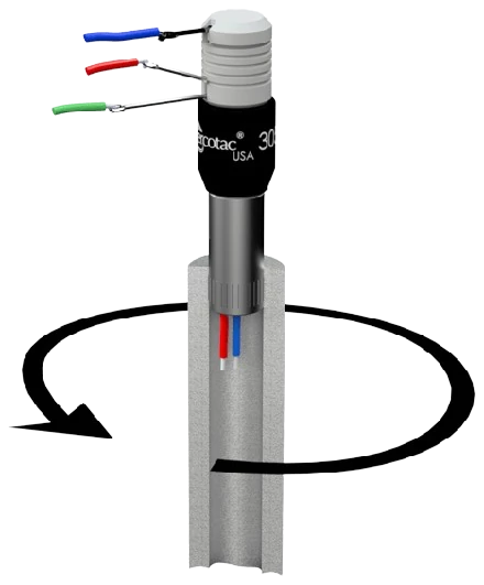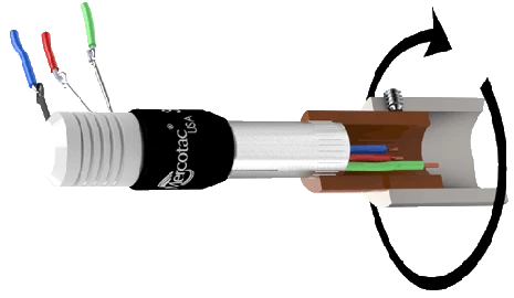 El modelo 305 generalmente se monta mediante un receptáculo de metal moleteado, que se ajusta a presión en el miembro giratorio de la máquina. Cuando se use horizontalmente, monte el Mercotac de manera que el cuerpo del conector gire.