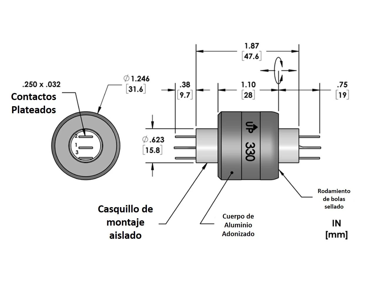 - Disponible con rodamiento de bolas de acero inoxidable (330-SS) (recomendado para ambientes húmedos o corrosivos).